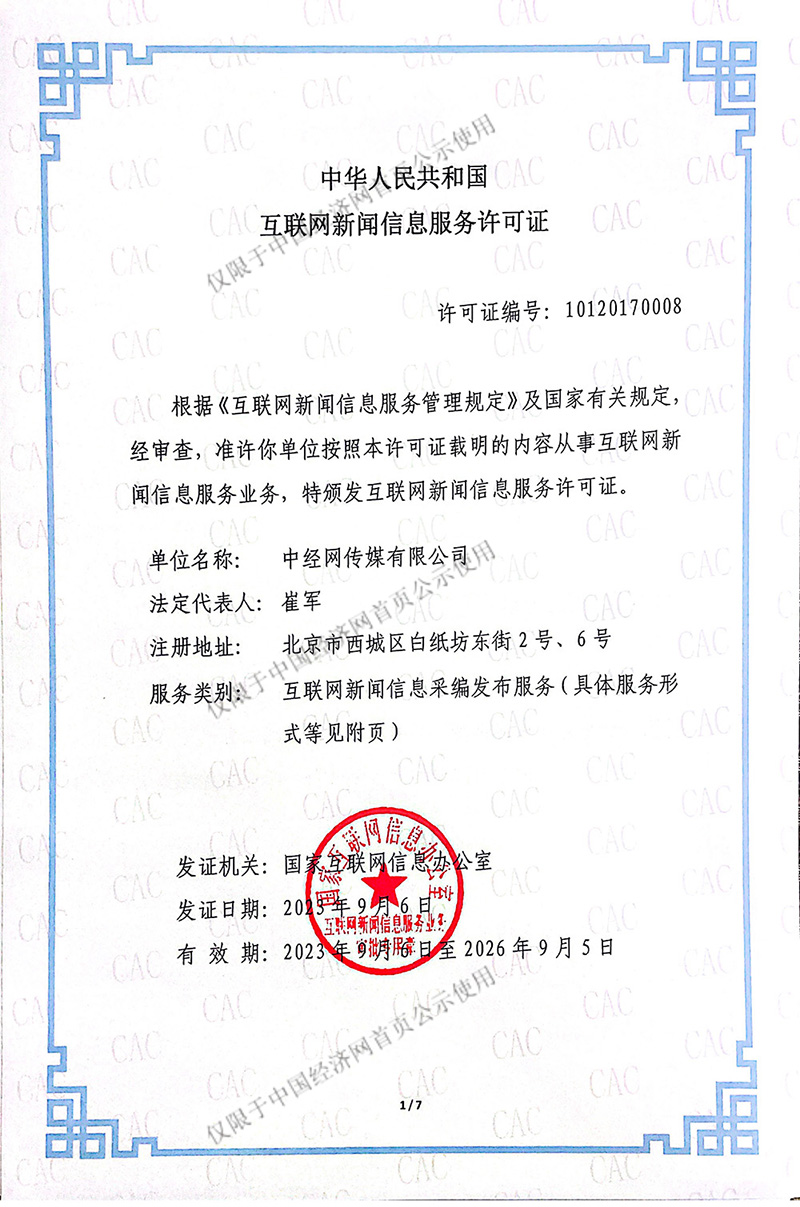 中國經(jīng)濟(jì)網(wǎng)《互聯(lián)網(wǎng)新聞信息服務(wù)許可證》公示