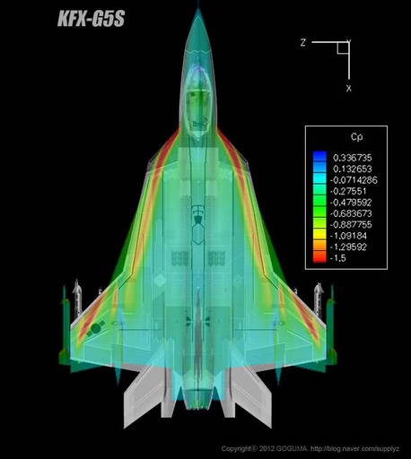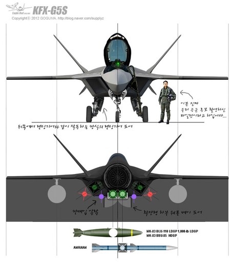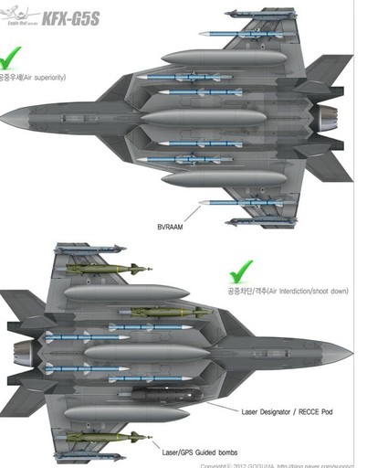 韓國公布的這組KFX-G5S戰(zhàn)機圖片中的另一關(guān)鍵技術(shù)要點是,有別于之前任何一款第五代戰(zhàn)機方案,韓國似乎在構(gòu)想KFX-G5S型戰(zhàn)機之初,就將外部掛載視作主要性能,而非像美制第五代戰(zhàn)機那樣,將外部掛載視作特殊情況下的無奈之舉。從韓國為KFX-G5S戰(zhàn)機規(guī)劃的掛載方案來看,作為輕型戰(zhàn)機的KFX-G5S,在無內(nèi)部掛載的情況下,外掛點超過10個,基本達到F-16戰(zhàn)機的水平。如果再考慮第五代戰(zhàn)機較之第四代戰(zhàn)機較大的內(nèi)部空間帶來的機內(nèi)載油優(yōu)勢,KFX-G5S型戰(zhàn)機的外掛能力應(yīng)在F-16之上。