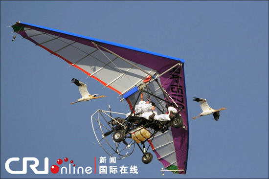 普京駕駛滑翔機(jī)引領(lǐng)鶴群遷徙(國(guó)際在線/CFP)