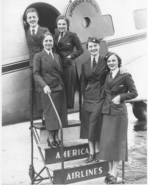 圖2:美國(guó)航空空中小姐在DC-3飛機(jī)前留影。