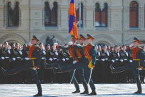 當(dāng)?shù)貢r(shí)間8日10時(shí)(北京時(shí)間14時(shí)),俄羅斯莫斯科紅場(chǎng)舉行盛大閱兵,慶祝衛(wèi)國戰(zhàn)爭(zhēng)勝利68周年。俄羅斯總統(tǒng)普京和總理梅德韋杰夫出席了此次閱兵。俄羅斯新任國防部長紹伊古檢閱了部隊(duì)。今年的“勝利日”閱兵仍按照迎軍旗、閱兵式和分列式三部分進(jìn)行,閱兵式持續(xù)了約1個(gè)小時(shí)。此次閱兵,集結(jié)了68架俄羅斯主戰(zhàn)飛機(jī)的空中受閱編隊(duì)成為最大看點(diǎn)。