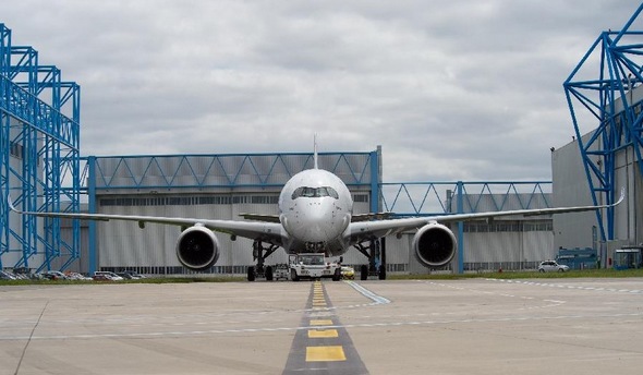 首架用于飛行測試的空客A350XWB寬體飛機日前在法國圖盧茲完成整體噴漆,這標(biāo)志著空客這一新型飛機又向預(yù)定今年夏季的首次飛行邁進(jìn)一步。