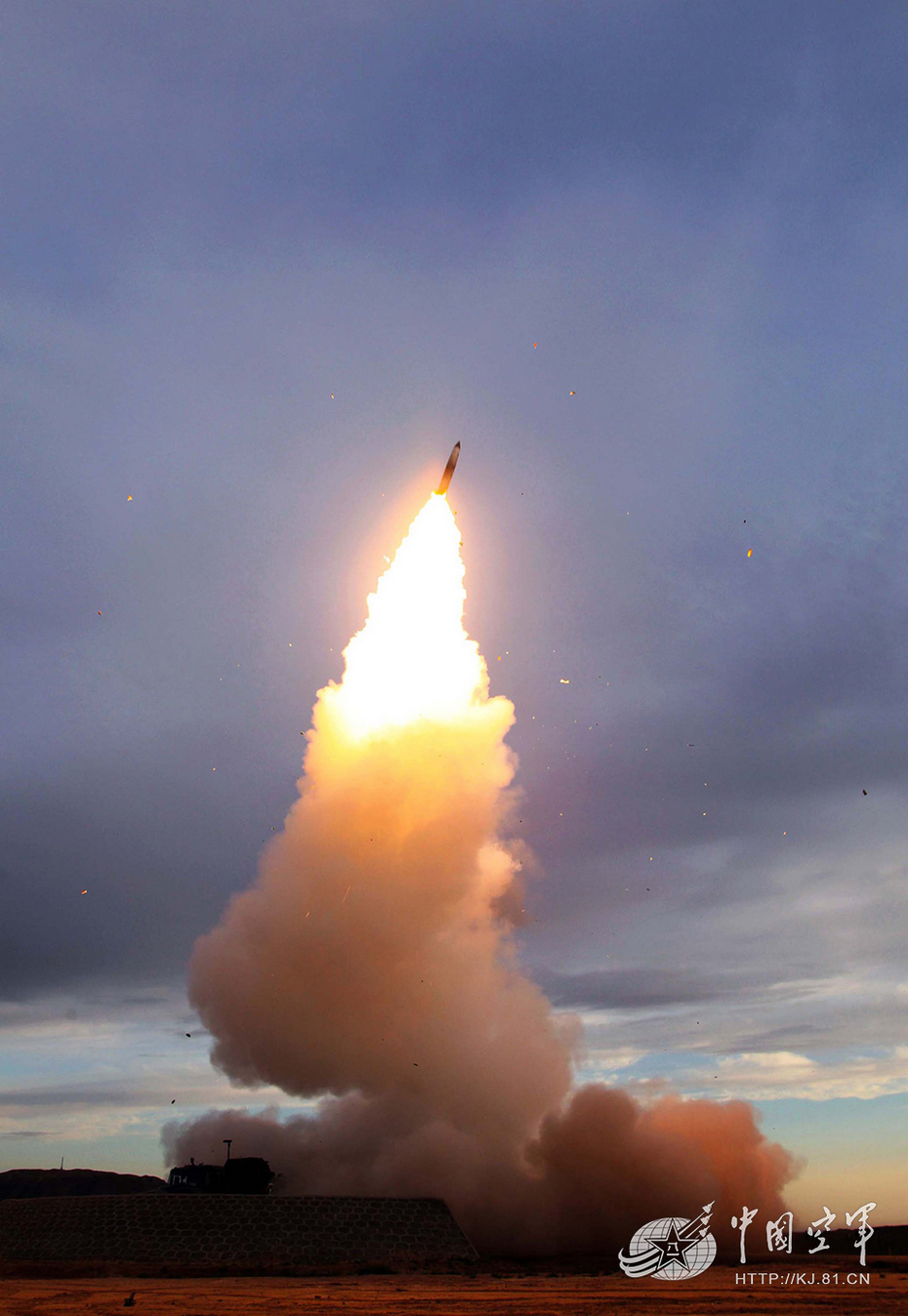 新型導(dǎo)彈騰空而起奔向來襲目標(biāo)。