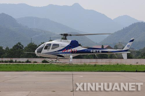 資料圖片: 2011年9月1日,國(guó)產(chǎn)2噸級(jí)輕型民用直升機(jī)AC311正在執(zhí)行“自轉(zhuǎn)著陸”科目試飛。