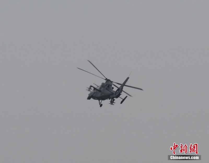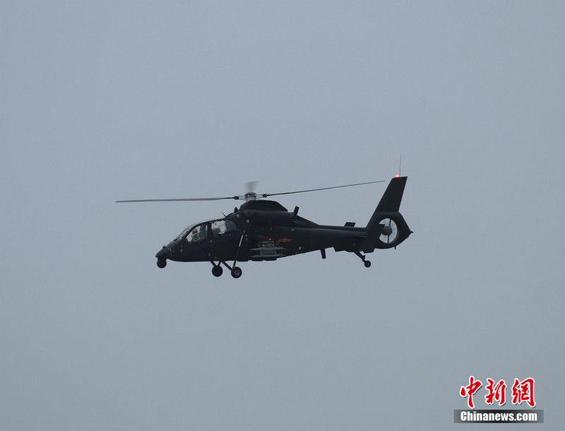 中新網(wǎng)珠海11月11日電(陳海峰) 中國陸航直19武裝直升機11日在珠海航展上空進行了精彩的飛行表演。