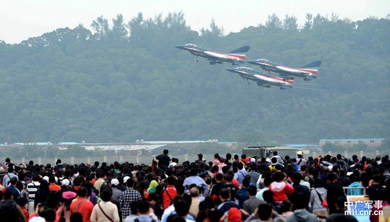 11月18日下午,珠海機場的上空烏云密布,天氣極為復雜多變?哲姲艘槐硌蓐犜谑f多觀眾的歡呼雀躍中,完成一系列高難動作,為第九屆珠海航展圓滿謝幕。