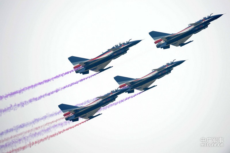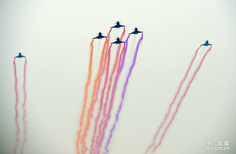 “太偉大了!” “中國空軍萬歲”當表演隊手持國旗繞場一周時,全場觀眾沸騰起來,報以雷鳴般的掌聲和歡呼聲,把閉幕式推向高潮(來源:中國廣播網 記者沈玲)