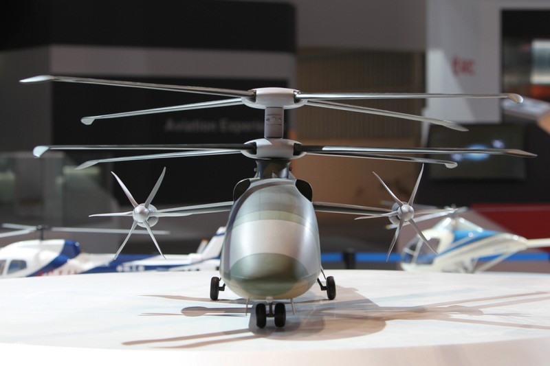 “先驅(qū)01”新概念高速直升機的兩副旋翼共軸反轉(zhuǎn)相互平衡反扭矩,同時提供飛行器垂直起降,懸停時所需的升力。大速度前飛時,尾推力槳工作。經(jīng)過特殊設計的槳葉能夠很好的解決后行槳葉失速問題,從而實現(xiàn)直升機的高速飛行。