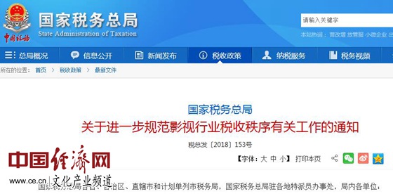 國家稅務(wù)總局關(guān)于進一步規(guī)范影視行業(yè)稅收秩序有關(guān)工作的通知