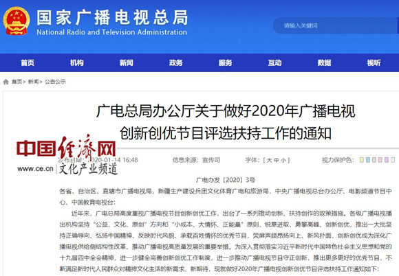 廣電總局辦公廳關(guān)于做好2020年廣播電視創(chuàng)新創(chuàng)優(yōu)節(jié)目評選扶持工作的通知