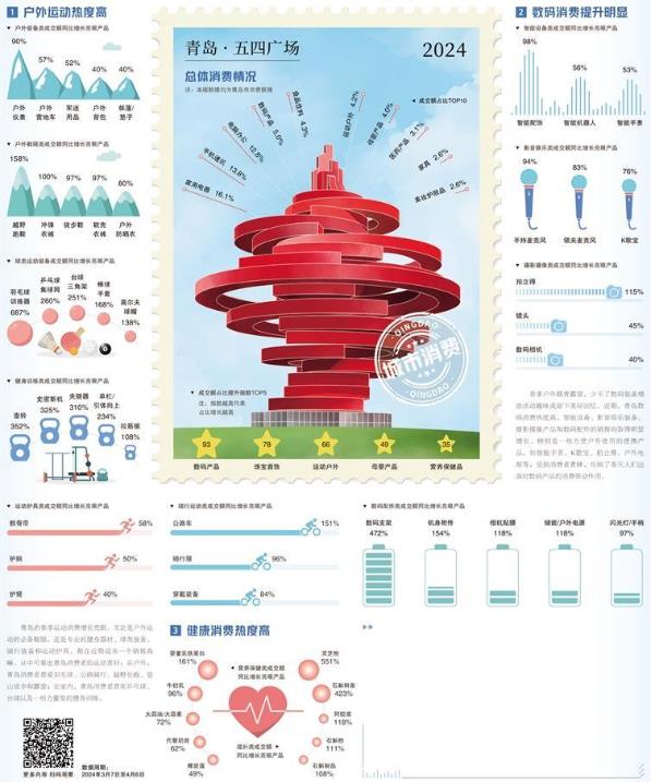 近年來,青島打造了多個旅游IP,每到節(jié)假日,棧橋、太平角、八大關(guān)、五四廣場等景點,都會人頭攢動。影音娛樂、攝影攝像類產(chǎn)品的增長,顯現(xiàn)出青島著名旅游城市的底色。人氣足,消費旺,文旅深度融合進一步激發(fā)了消費活力。