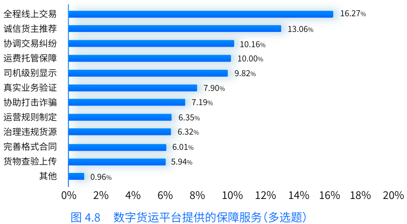 報告指出,通過貨車司機在線上獲取貨源的比例來衡量他們客觀上對平臺的使用情況,發(fā)現貨車司機使用數字貨運平臺的程度較高。