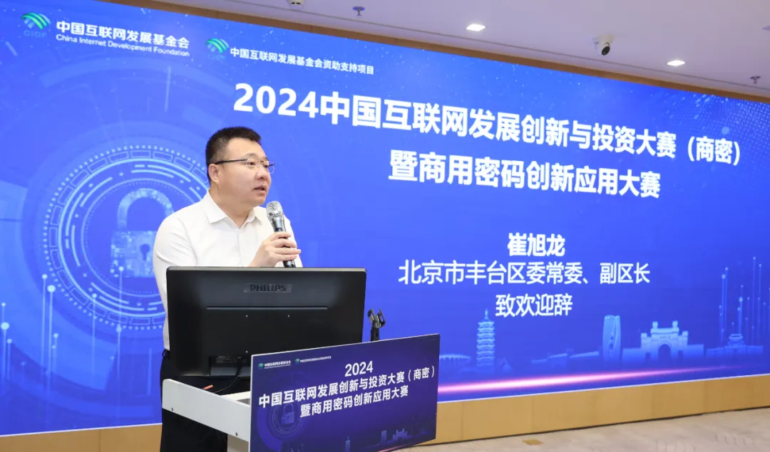 北京市豐臺區(qū)常委、副區(qū)長崔旭龍致辭,中國互聯(lián)網(wǎng)發(fā)展基金會、中國互聯(lián)網(wǎng)投資基金、工信部網(wǎng)安中心領(lǐng)導出席觀賽。