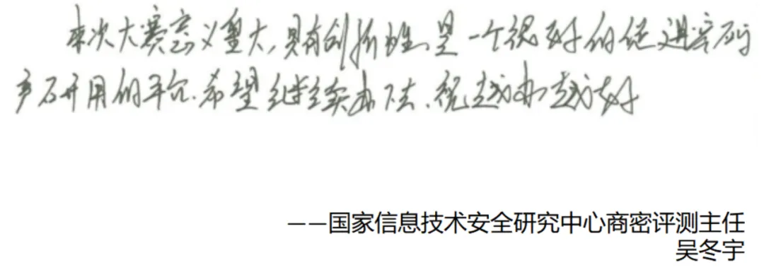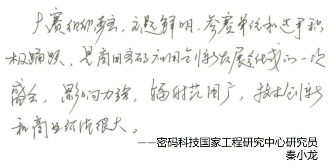 賽后,密碼科技國家工程研究中心研究員秦小龍、中國電力科學研究院高級工程師李智虎、中國科學院大學網(wǎng)絡空間安全學院教授/博導王躍武、國家信息技術(shù)安全研究中心商密評測主任吳冬宇等多位專家評委給大賽提出了寶貴的建議和意見。