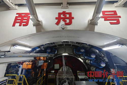 國產(chǎn)超大直徑盾構(gòu)機“甬舟號”。中國經(jīng)濟網(wǎng)記者 佟明彪/攝