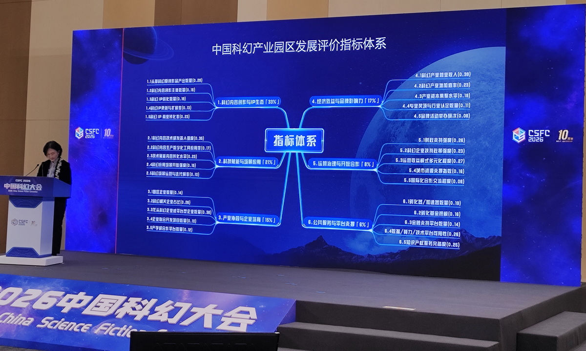 現(xiàn)場發(fā)布《中國科幻產(chǎn)業(yè)園區(qū)發(fā)展評價指標體系》。中國經(jīng)濟網(wǎng)記者李冬陽/攝