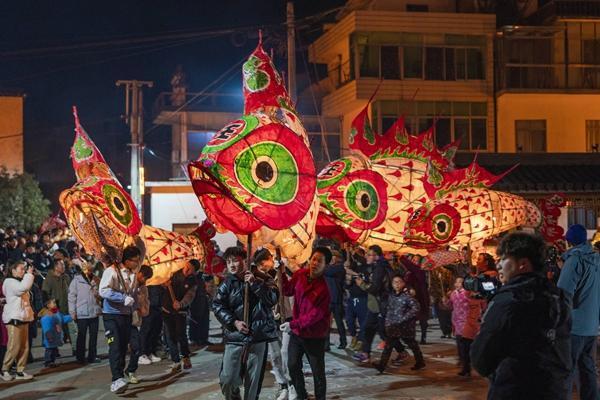 2010年前后,有600多年歷史的汪滿田魚燈因為年輕人的記錄而開始“出圈”。一名編導(dǎo)專業(yè)的大一學(xué)生回歙縣奶奶家過年,聽老人講起汪滿田村的“嬉魚燈”,進村拍攝紀錄片《不嬉不行》。如今,汪滿田魚燈已火遍全網(wǎng),讓很多人對年年有“魚”的愿望有了具象呈現(xiàn)。