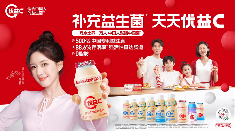 優(yōu)益C “適合中國人的益生菌”,連續(xù)四年品牌力行業(yè)第一。優(yōu)益C全線產(chǎn)品使用中國專利益生菌PC-01, 斬獲第二十四屆中國專利銀獎(jiǎng)及2023年度國家科學(xué)技術(shù)進(jìn)步獎(jiǎng)二等獎(jiǎng),是目前乳業(yè)在專利領(lǐng)域唯一且最高榮譽(yù)。優(yōu)益C 100ml暢快新品行業(yè)首創(chuàng)的5株復(fù)合中國益生菌,上市后好評(píng)席卷各大平臺(tái)。通過分眾媒體曝光、小優(yōu)尋菌之路主題營銷、大優(yōu)奧運(yùn)主題營銷拉近與消費(fèi)者的距離,“一方水土養(yǎng)一方人,中國人就補(bǔ)中國益生菌”的概念深入人心,備受消費(fèi)者喜愛。
