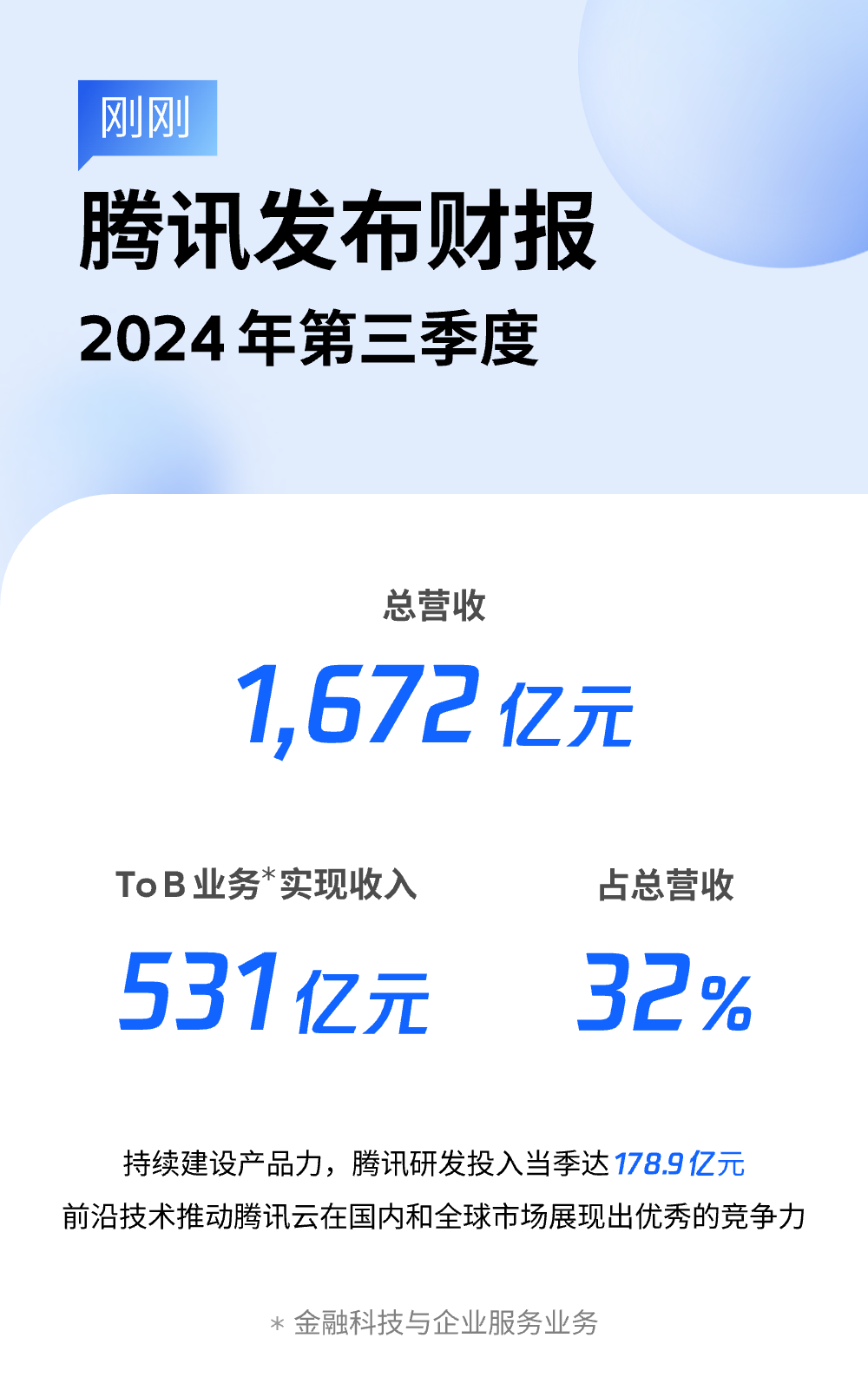 騰訊Q3財報:ToB營收531億元 云國際業(yè)務和AI大模型落地加速