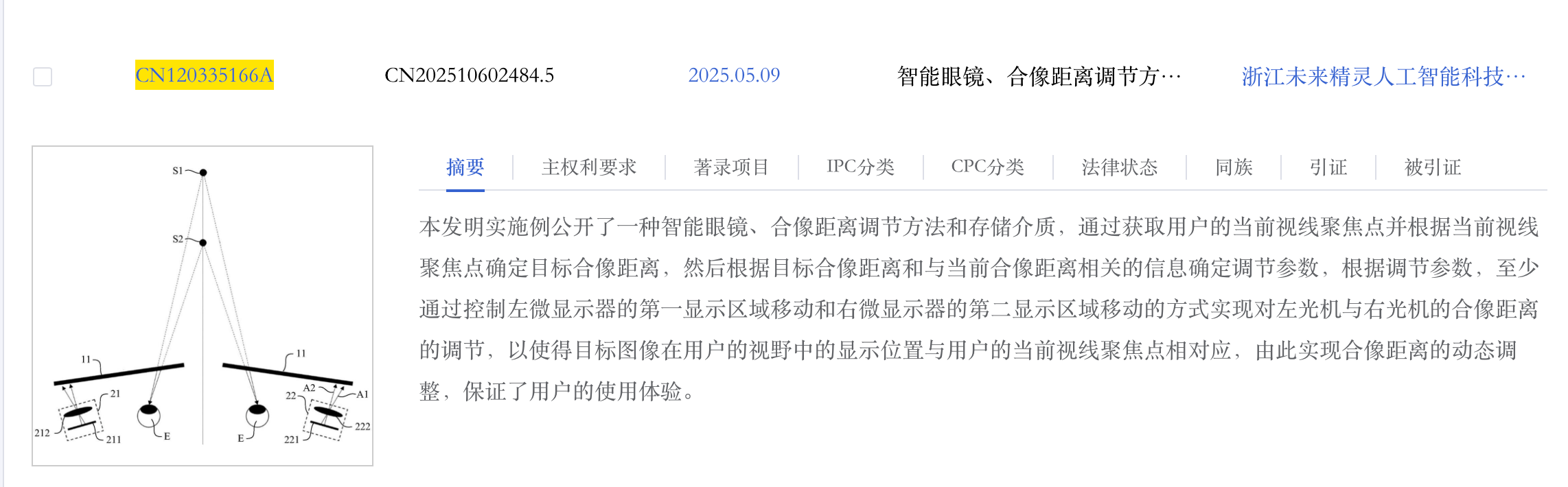 該專(zhuān)利使得AI眼鏡的合像距遠(yuǎn)近調(diào)節(jié)成為可能,意味著AI眼鏡顯示能夠更好地適配不同場(chǎng)景(如室內(nèi)提詞與戶(hù)外導(dǎo)航),視覺(jué)體驗(yàn)更符合人眼習(xí)慣,進(jìn)而提升長(zhǎng)時(shí)間佩戴的視覺(jué)舒適度。