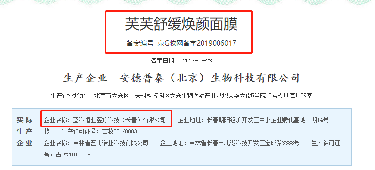 記者了解到,藍(lán)科恒業(yè)醫(yī)療科技(長春)有限公司是芙芙舒緩煥顏面膜、芙芙深澈潤顏面膜、芙芙抑痘凈顏面膜、芙芙清痘復(fù)顏面膜等產(chǎn)品的生產(chǎn)企業(yè)。其中芙芙舒緩煥顏面膜在網(wǎng)購平臺(tái)上芙芙官方旗艦店總銷售量達(dá)54萬。