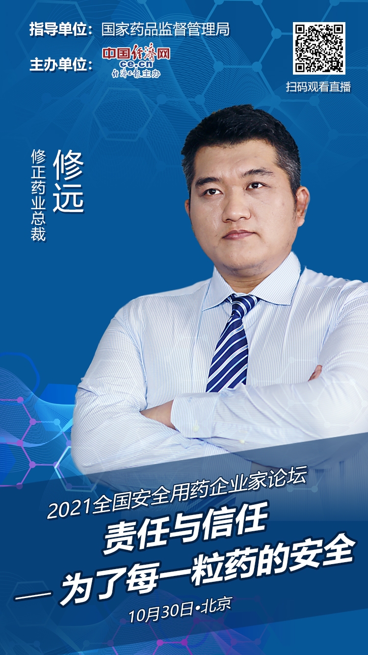 中國經(jīng)濟(jì)網(wǎng)北京10月30日訊(記者 郭文培) “安全、有效、可及是藥品的三大根本問題。其中,安全是排在第一位的?!?0月30日,在中國經(jīng)濟(jì)網(wǎng)舉辦的2021全國安全用藥企業(yè)家論壇上,修正藥業(yè)總裁修遠(yuǎn)談安全用藥。他說,安全用藥,人是根本、原材料是源頭、生產(chǎn)工藝是關(guān)鍵、監(jiān)督檢驗(yàn)是保障、科技研發(fā)是引領(lǐng)。