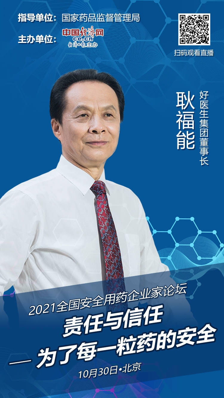 中國經(jīng)濟(jì)網(wǎng)北京10月30日訊(記者 郭文培) 時值《關(guān)于促進(jìn)中醫(yī)藥傳承創(chuàng)新發(fā)展的意見》印發(fā)兩周年之際,10月30日,在中國經(jīng)濟(jì)網(wǎng)舉辦的 “2021全國安全用藥企業(yè)家論壇”上,好醫(yī)生集團(tuán)董事長耿福能再次談到中醫(yī)藥守正創(chuàng)新。他說,守正創(chuàng)新的核心就是一句話,即療效和安全。