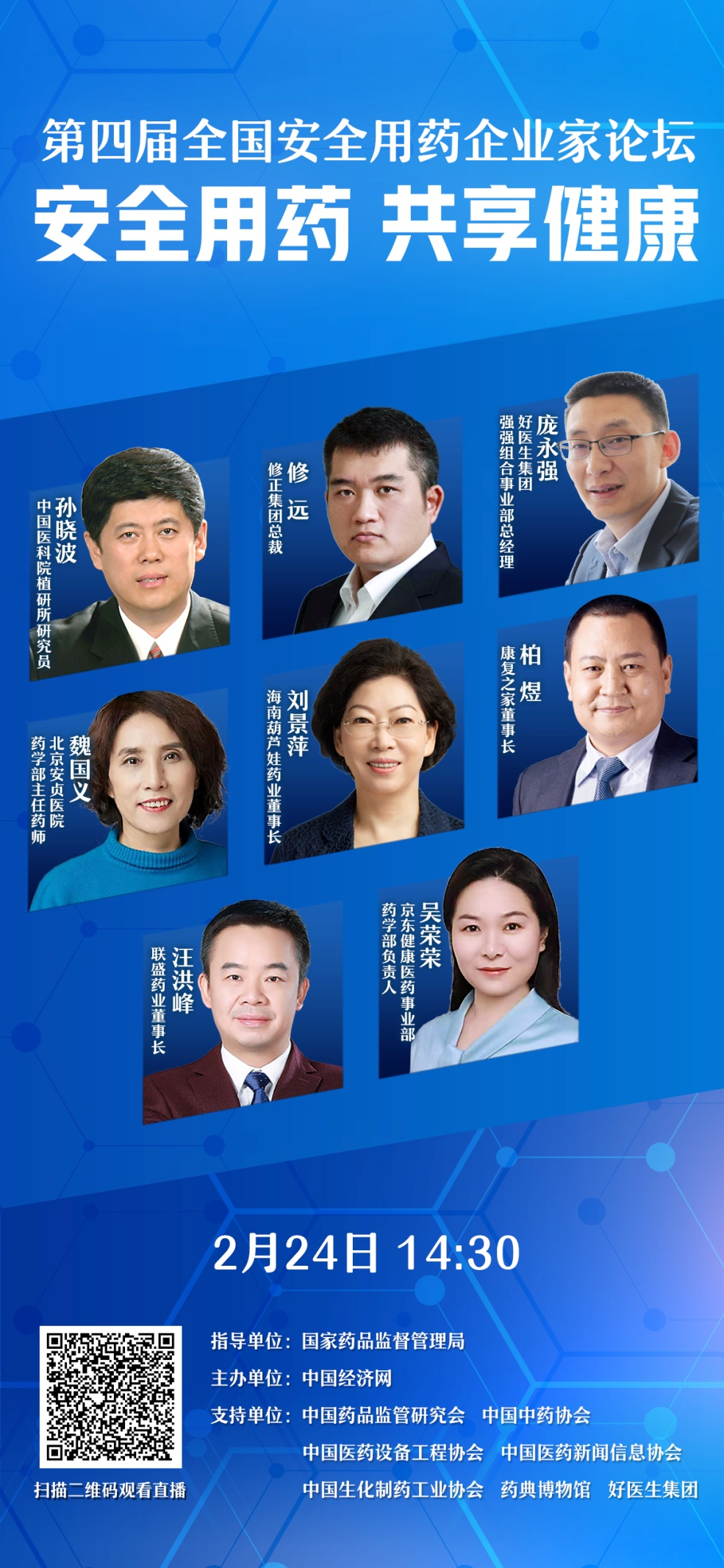 2月24日,由國家藥品監(jiān)督管理局指導,中國經(jīng)濟網(wǎng)主辦的“第四屆全國安全用藥企業(yè)家論壇”在北京召開。此次論壇是“全國安全用藥月”系列活動的組成部分,論壇主題為“安全用藥 共享健康”。國家藥品監(jiān)管部門領(lǐng)導與知名醫(yī)藥專家、企業(yè)家,還有來自全國的企業(yè)代表、基層醫(yī)生藥師齊聚一堂,從安全發(fā)展到協(xié)同共治的視角,對安全用藥及醫(yī)藥產(chǎn)業(yè)高質(zhì)量發(fā)展展開深入交流。論壇通過中國經(jīng)濟網(wǎng)新媒體、中經(jīng)云端、百度直播、抖音、快手等直播平臺同時對外直播,總關(guān)注人數(shù)逾百萬。