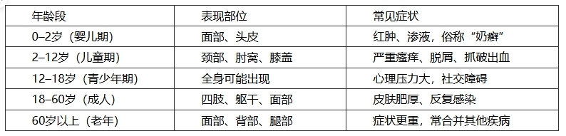 張建中教授詳細解析了特應性皮炎的5個年齡段表現: