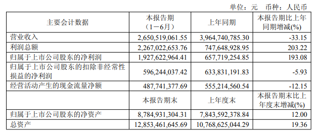 中國(guó)經(jīng)濟(jì)網(wǎng)北京8月20日訊(記者 郭文培)日前,達(dá)仁堂披露2025年半年度報(bào)告。報(bào)告期內(nèi),公司實(shí)現(xiàn)營(yíng)業(yè)收入26.51億元,同比下降33.15%;歸屬于上市公司股東的凈利潤(rùn)為19.28億元,同比增長(zhǎng)193.08%。