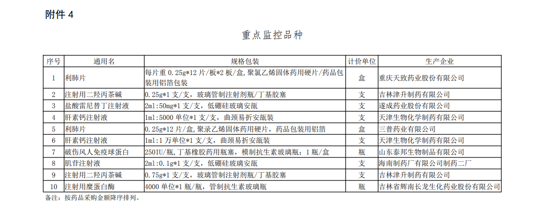 譬如,新申請超“黃線”品種名單中,北京同仁堂科技發(fā)展股份有限公司制藥廠麻仁潤腸軟膠囊、云南白藥集團(tuán)股份有限公司云南白藥氣霧劑系獨(dú)家品種;原在庫超“黃線”品種名單中,浙江泰利森藥業(yè)有限公司瑞格列奈二甲雙胍片(II)是獨(dú)家品種;未通過公允性品種名單中,湖北福人金身藥業(yè)有限公司補(bǔ)心氣口服液、上海玉丹藥業(yè)有限公司參桂膠囊是獨(dú)家品種;重點(diǎn)監(jiān)控品種名單中,吉林津升制藥有限公司注射用二羥丙茶堿為獨(dú)家品種。