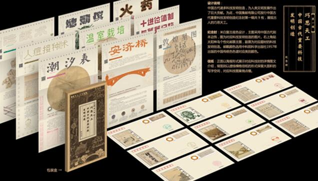 該系列紀(jì)念封由張泮儉、張慶鋒設(shè)計(jì),風(fēng)格整體統(tǒng)一又有特色,兼具科學(xué)與藝術(shù)之美,既能感受到傳統(tǒng)文化的古香古色,又在設(shè)計(jì)和制作上大膽創(chuàng)新。每類郵戳對(duì)照中國(guó)傳統(tǒng)色色譜進(jìn)行色系標(biāo)注,顏色有所區(qū)別。紀(jì)念封配有精美封套,通過(guò)主圖、郵戳、個(gè)性化郵票直觀表現(xiàn)科技成果,同時(shí)在封里增加了一張?jiān)O(shè)計(jì)精良的三折插頁(yè)卡片——頁(yè)式“說(shuō)明書”,掃描封上二維碼,還可以觀看動(dòng)畫短片,參與互動(dòng)游戲。