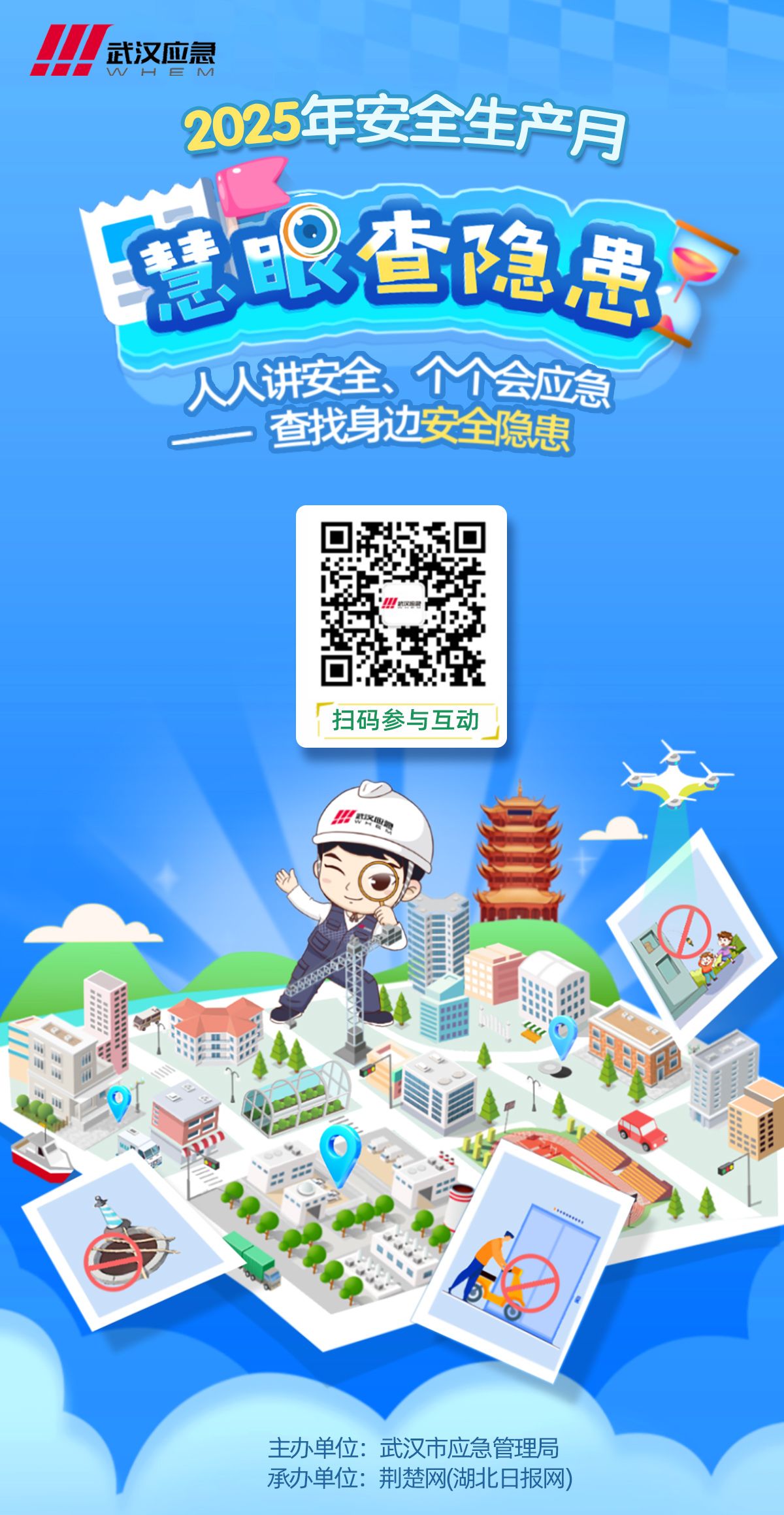 荊楚網(wǎng)(湖北日報網(wǎng))訊(記者薛培愷 通訊員晏慧)今年6月是第24個全國“安全生產(chǎn)月”,主題是“人人講安全、個個會應急——查找身邊安全隱患”。由武漢市應急管理局主辦,荊楚網(wǎng)(湖北日報網(wǎng))承辦的2025年安全生產(chǎn)月“慧眼查隱患”線上趣味互動游戲,將于6月15日正式上線。該游戲以知識性、趣味性、沉浸式的全新體驗,讓廣大群眾和網(wǎng)友學習安全知識更直觀、查找身邊安全隱患更“直接”。