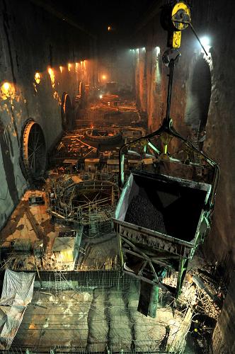 正在建設(shè)中的三峽工程地下電站內(nèi)景(2009年3月26日攝)。目前,三峽工程的樞紐和輸變電工程已基本完工,運(yùn)行平穩(wěn),綜合效益日益顯現(xiàn)。2009年6月30日,三峽電站26臺(tái)機(jī)組首次實(shí)現(xiàn)全部同時(shí)并網(wǎng)發(fā)電。