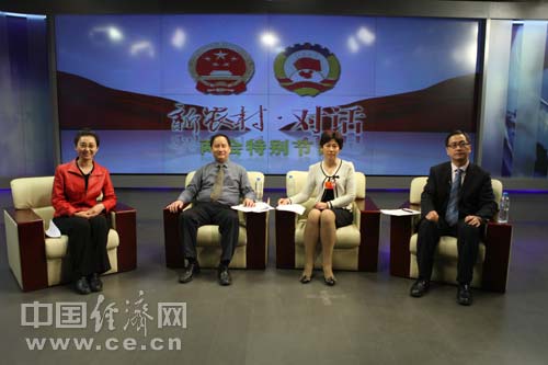 第十一屆全國人大代表、山東臨沭縣農(nóng)業(yè)局農(nóng)經(jīng)中心主任劉建文,農(nóng)業(yè)部全國農(nóng)業(yè)技術(shù)推廣服務(wù)中心土肥處處長(zhǎng)李榮,國家緩控釋肥工程技術(shù)研究中心副主任、山東金正大公司副總經(jīng)理陳宏坤做客中國經(jīng)濟(jì)網(wǎng)。(王耀峰 攝)