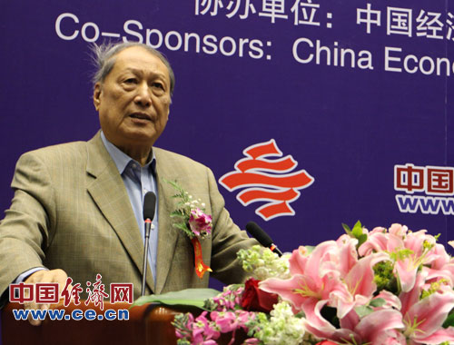 中國科學(xué)院預(yù)測科學(xué)研究中心1月26日(周五)在北京中科院數(shù)學(xué)與系統(tǒng)科學(xué)研究院舉辦“2013年中國經(jīng)濟預(yù)測發(fā)布與研討會”。圖為中國科學(xué)院預(yù)測科學(xué)研究中心學(xué)術(shù)委員會主任 第七、八屆全國人大副委員長成思危致辭。中國經(jīng)濟網(wǎng)楊瀟/攝影