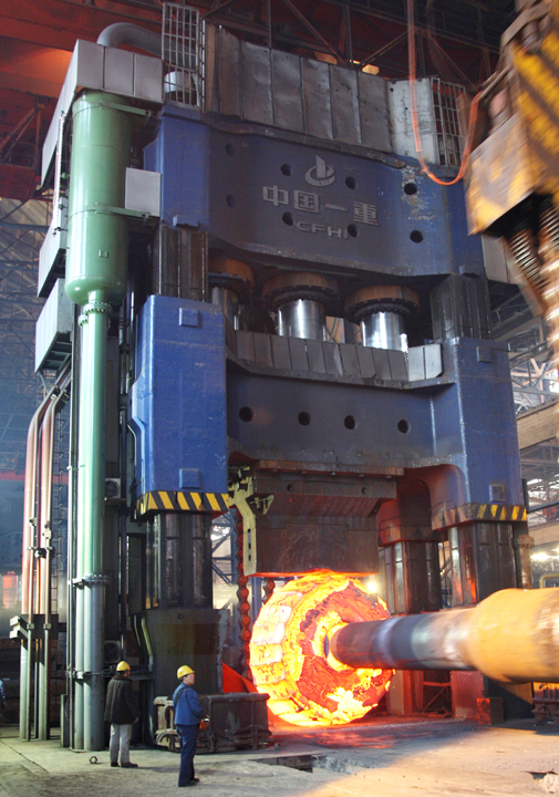 在火電、水電等一些大型鑄鍛件制造方面,經(jīng)過(guò)不懈努力,中國(guó)一重已經(jīng)成為國(guó)內(nèi)生產(chǎn)300~1000MW火電機(jī)組大型鍛件能力最強(qiáng)的企業(yè),并具備制造700MW水力發(fā)電站機(jī)組葉片、上冠、下環(huán)、水輪機(jī)大軸等鑄鍛件的能力!