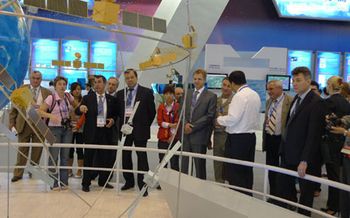 即將于2014年實(shí)現(xiàn)首飛的新一代大運(yùn)載火箭“長(zhǎng)征五號(hào)”模型高高地矗立著!伴L(zhǎng)二F”、“長(zhǎng)三甲”、“長(zhǎng)四乙”等白色箭體模型緊隨其后,一字排開(kāi),場(chǎng)面蔚為壯觀。很多電視媒體在采訪時(shí),都有意識(shí)地將長(zhǎng)征火箭或者“天宮一號(hào)”的模型作為背景。