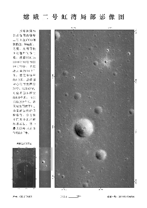 北京,2010年11月8日 國家國防科技工業(yè)局首次發(fā)布嫦娥二號月面虹灣局部影像圖 這是嫦娥二號虹灣局部影像圖(成像時間為10月28日)。